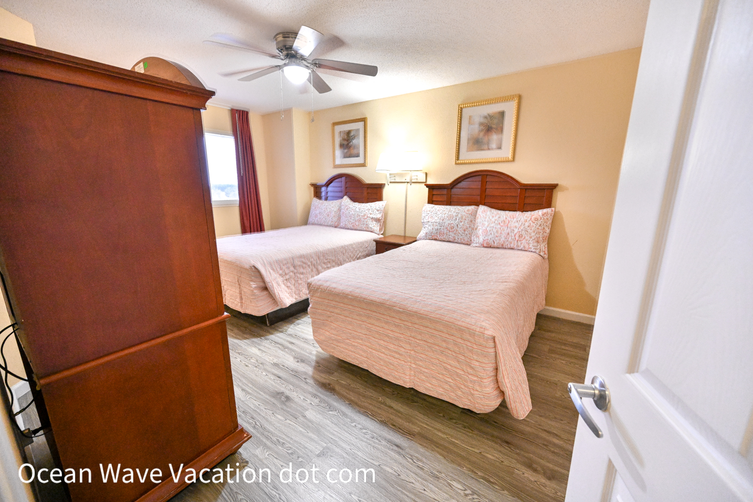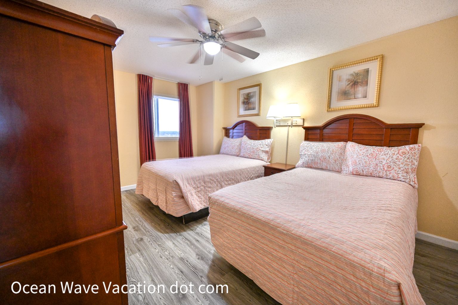 Indulge in the ultimate beachfront escape at our stunning 2-bedroom, 2-bathroom luxury condo, ideally situated on the 15th floor with sweeping ocean views and private balconies overlooking the Atlantic. From the moment you step inside, you’ll be surrounded by elegant design, upscale finishes, and resort-style comfort. The oceanfront master suite features a plush king-sized bed, luxury linens, and a private sliding glass door that opens to the balcony—perfect for sipping coffee as the sun rises over the water, all without leaving your bed. The second bedroom offers two queen beds, ample closet space, and its own full private bathroom, making this the ideal choice for families or groups seeking both comfort and privacy.
